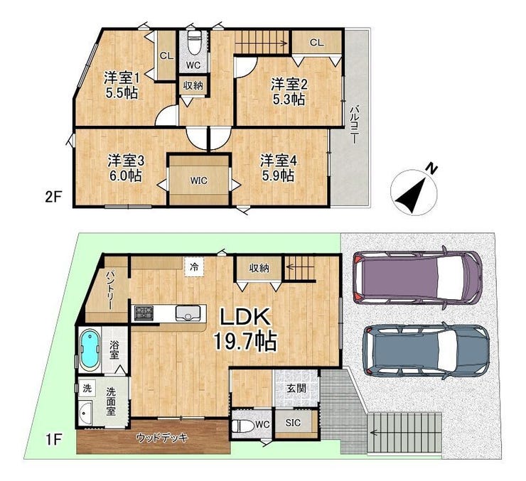 【家事導線の整ったお住まい】豊富な収納。広々普通車2台駐車可能なカースペースあり!