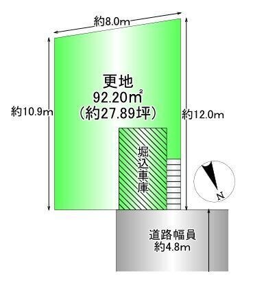 | 土地面積 | 公92.2㎡(27.89坪) | 接道 | 北東側(公道)幅 約4.8m 間口 約4.00m |