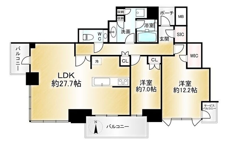 | 主要採光 | 南向 | バルコニー | 南西向12.22㎡ |