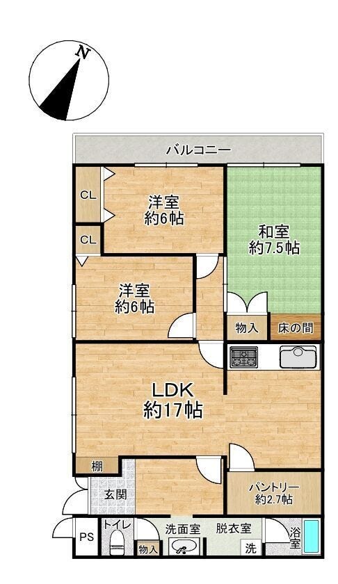 | 主要採光 | 北西向 | バルコニー | 北西向8.47㎡ |