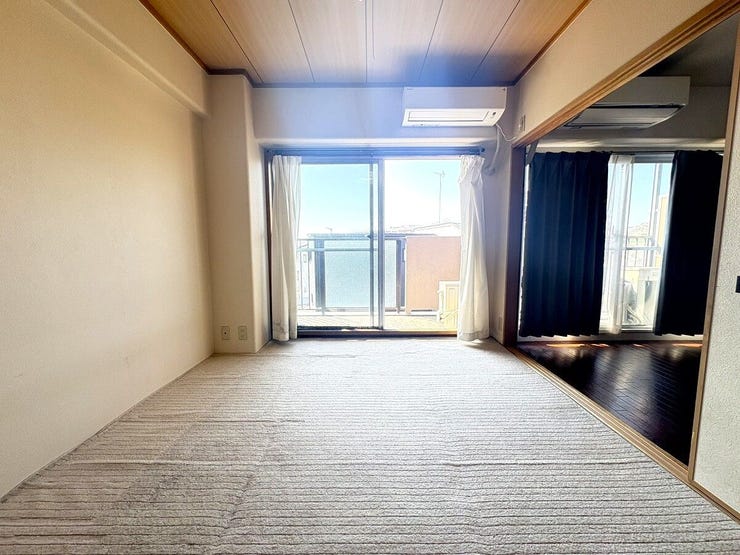 南西向きバルコニーから明るい日差しが差し込むリビング♪可ザクが自然と扱るくつろぎの空間です。